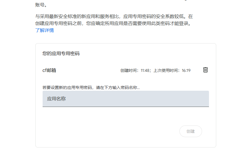 创建应用专用密码
