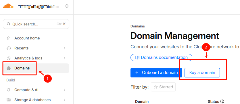 首先你要有一个在CloudFlare托管的域名,没有的话可以直接在CF买一个,支持VISA、PayPal支付,如图所示可以进入购买域名的界面
